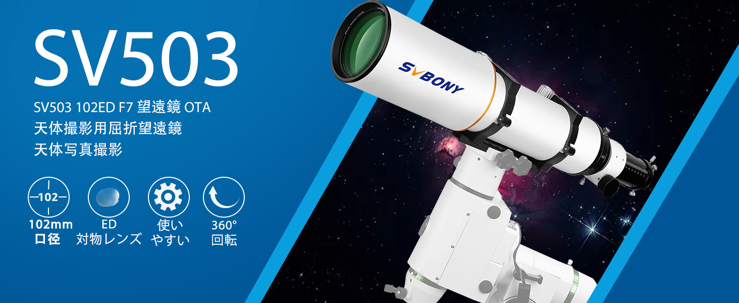 SV503 102mm屈折望遠鏡は、経験豊富な観察者だけでなく、初心者にも適しています。天体写真、月と惑星、自然観測、星雲と銀河などに適用します。万が一商品には不具合また損傷がありましたら、お気軽にご連絡ください。必ず最善を尽くし、保証サービスをご対応いたします。