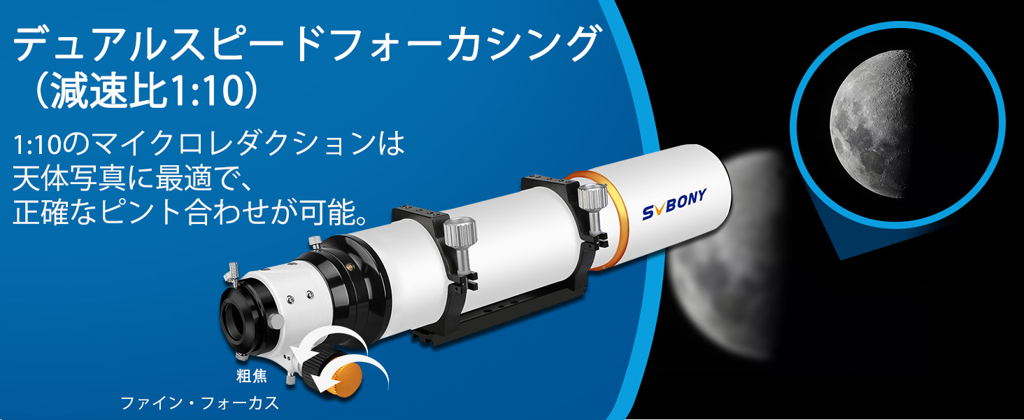 - 【デュアルフォーカス】SV503 102mm屈折望遠鏡には、定速と微速のフォーカスノブがあります。1:10のマイクロリダクションは天体撮影に最適で、さっそく正確な焦点合わせが可能です。2 "RAP(ラックアンドピニオン式)フォーカサーは、重い写真用アクセサリーを安全に配置することができます。