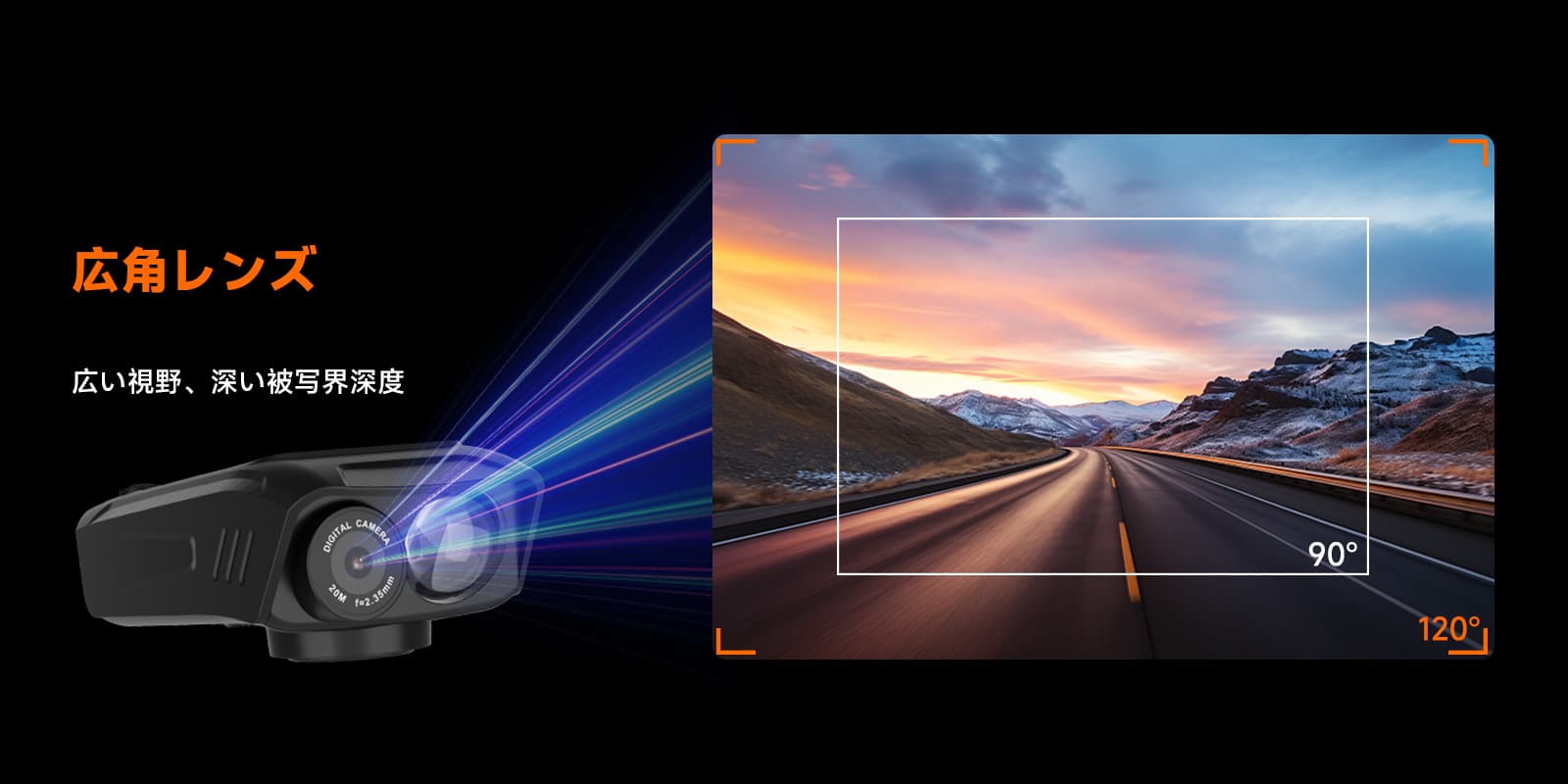広角レンズ; 被写界深度ワイドキャプチャ機能により、超広角画像で深く広い世界へ; このアクションカメラの超広角視野は、シーンをより多く捉えるだけでなく、驚くほどの奥行きと空間感覚を作り出します。