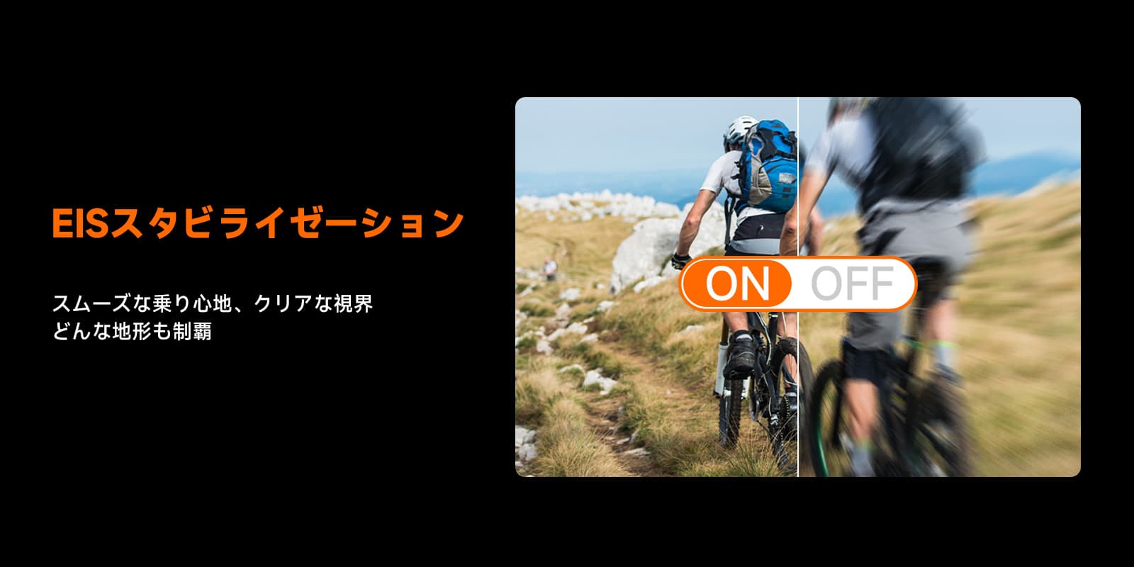 電子動体ブレ補正 (EIS) :電子動体ブレ補正 (EIS) は、カメラが振動する環境で滑らかなビデオを提供します。このアクションカメラには電子動体ブレ補正機能が搭載されており、乱気流の中でも安定した鮮明な映像を撮影できます。バイクや自転車に乗る人、アンドラの険しい道をマウンテンバイクでダウンヒルする人に最適です。