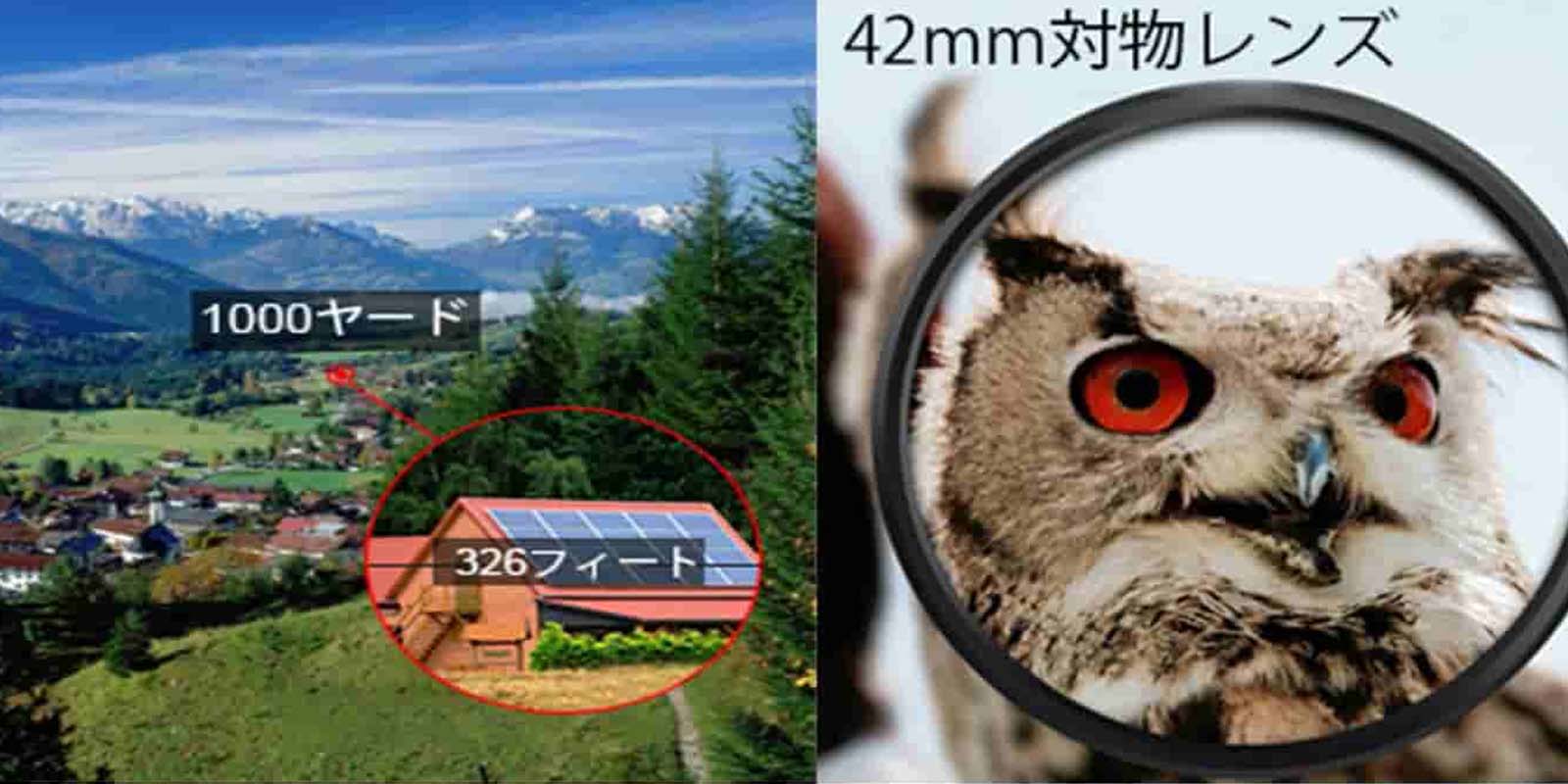 42mm大口径対物レンズは集光性能がもっとよい、視界が広いため、目標物が見やすく、捉えやすくなります。コンサート、ライブ、観戦、文化祭、自然観察、登山、旅行、天体観測など様々なシーンに適用します。