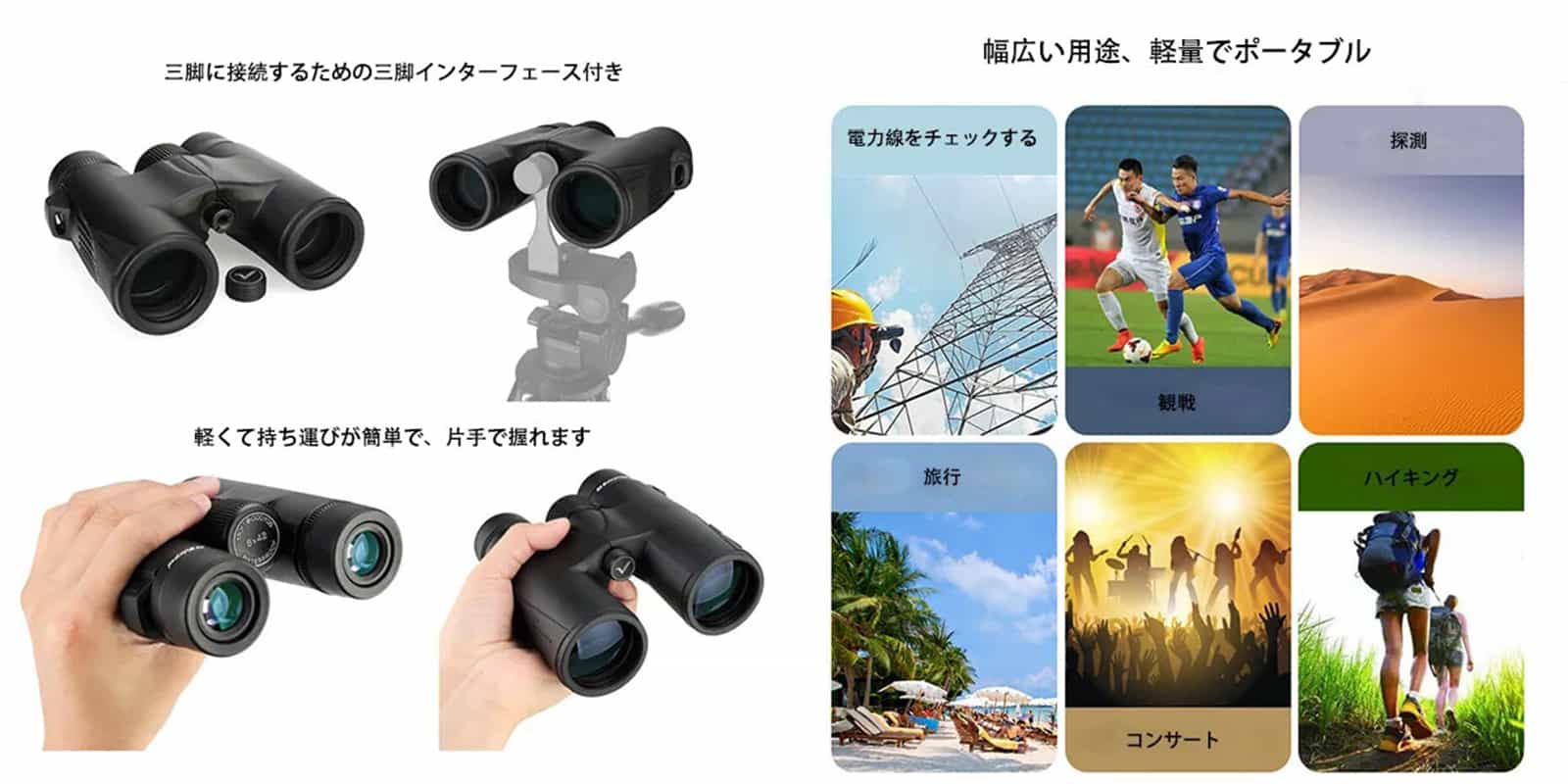 ピント調整と眼幅の合わせ操作は簡単で、誰でも手軽に使えます。いろんなアウトドア活動に最適、自然の美しさを実感できます。