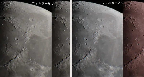 月がまぶしい時、ムーンフィルターを付けるとまぶしさが、コントラストを向上して対象を見やすくになります。