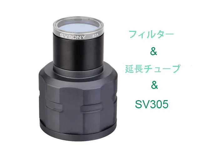 SV305はC-レンズアダプターが付属するだけではなく、SV305の1.25インチの延長チューブも付属してます。
