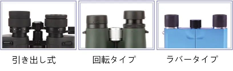 引き出し式:メガネをかけているときはアイカップをアイピースに押し込み、メガネをかけていないときはアイカップを引き出すことができます。