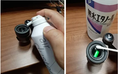 露出したレンズが油で汚れている場合は、薬用アルコールと特別なマイクロファイバークロスで拭き取ります。