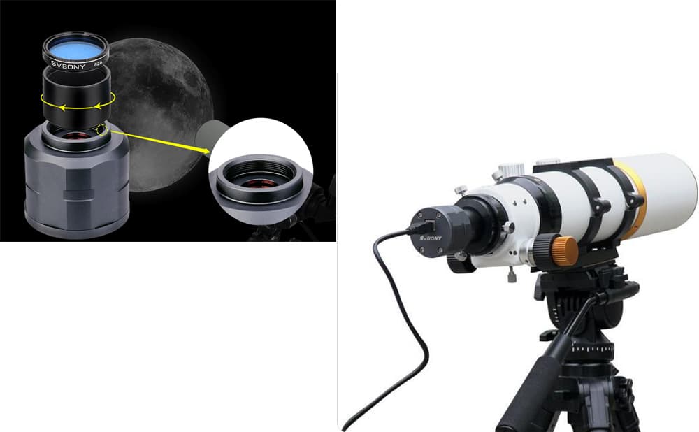 弊社のCMOSカメラ製品のシリーズには、SV305カメラとSV305ProカメラはC-マウントが付き、ガイド撮影ができます。