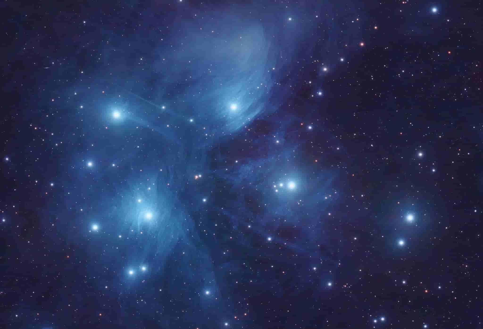 M45、Bortle 4/5 で 60 秒 x 120 ブロードバンドでキャプチャ、フィルターなし