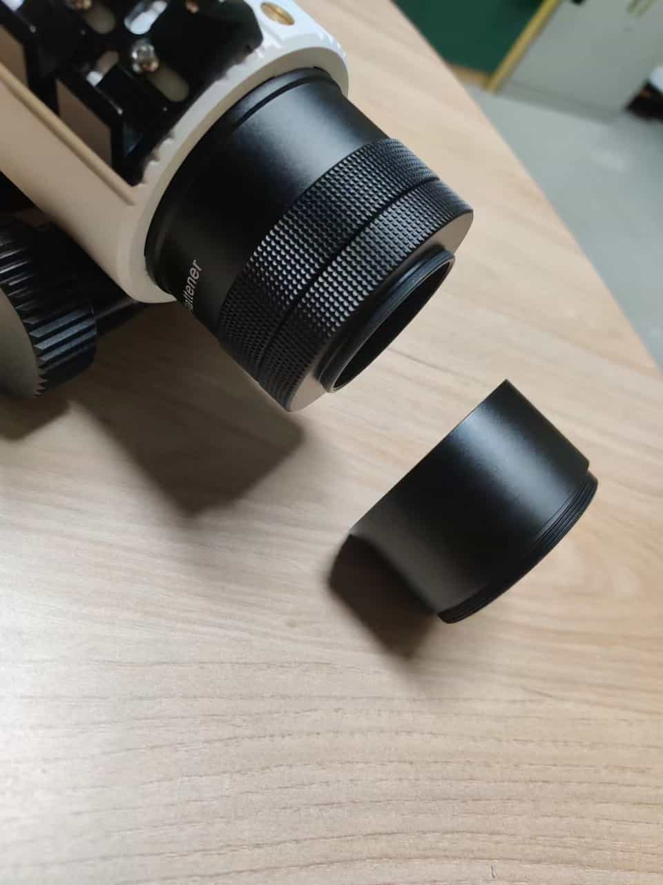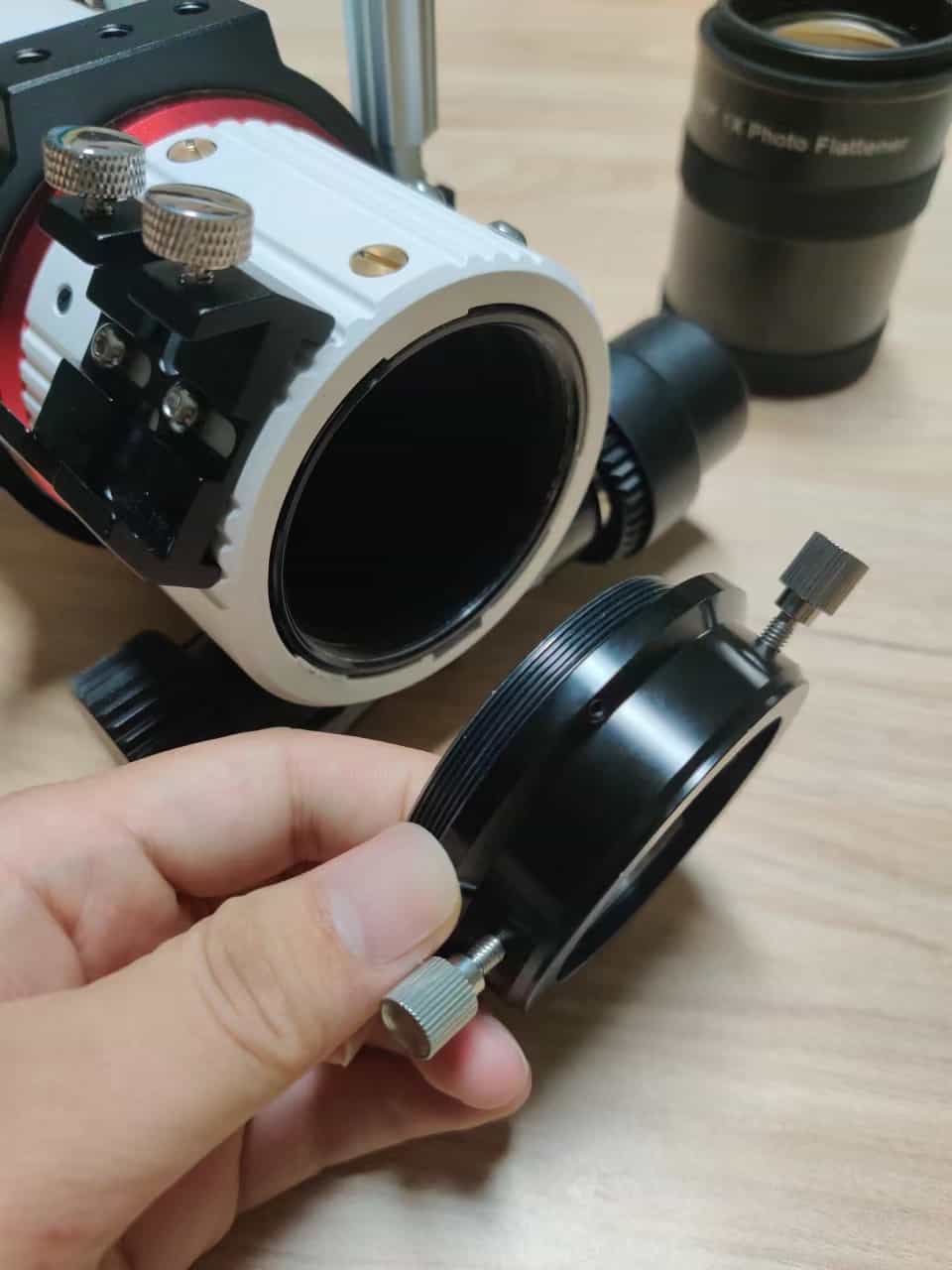 フラットナーの接続は簡単で、望遠鏡の2インチの接眼部を取り外して、フラットナーを接続できます。