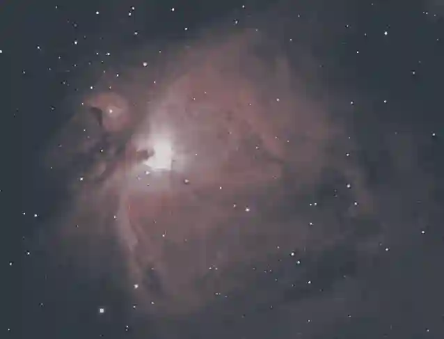 オリオン座星雲を撮影するには、望遠鏡に平行にならないようにガイドスコープの角度を調整したほうがいいです。これにより、撮影された明るい星雲はガイディングカメラの作業をを妨げません。