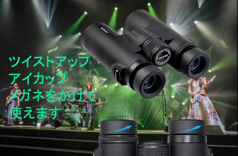 ツイストアップで眼鏡を掛けても掛けなくても使えます。ネックストラップがあります、使用するには大変便利で疲れないです。好きなアイドルのパフォーマンスを十分に鑑賞することができます。