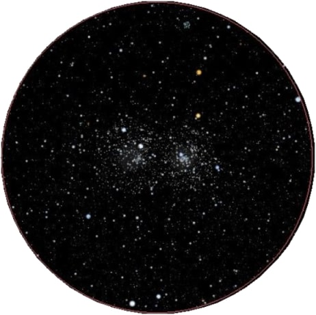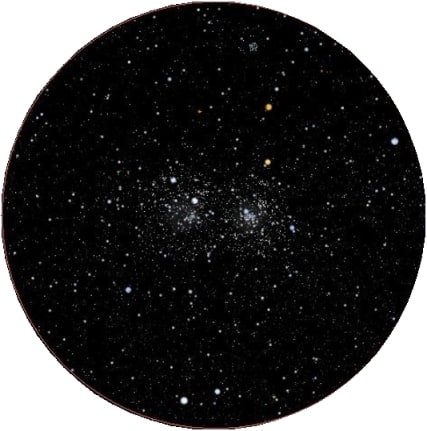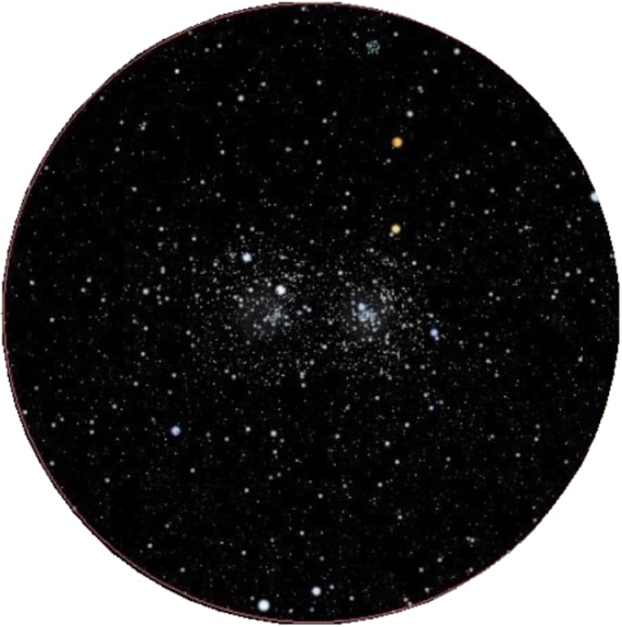 さて、長い梅雨で長らく宙が見えませんので今日も机上でB級星オタ遊びです。某天文クラブのアイピースシミュレータを拝借した、二重星団がこんな風に見えるハズ遊び、23mmから9mmまで行ってみましょう。