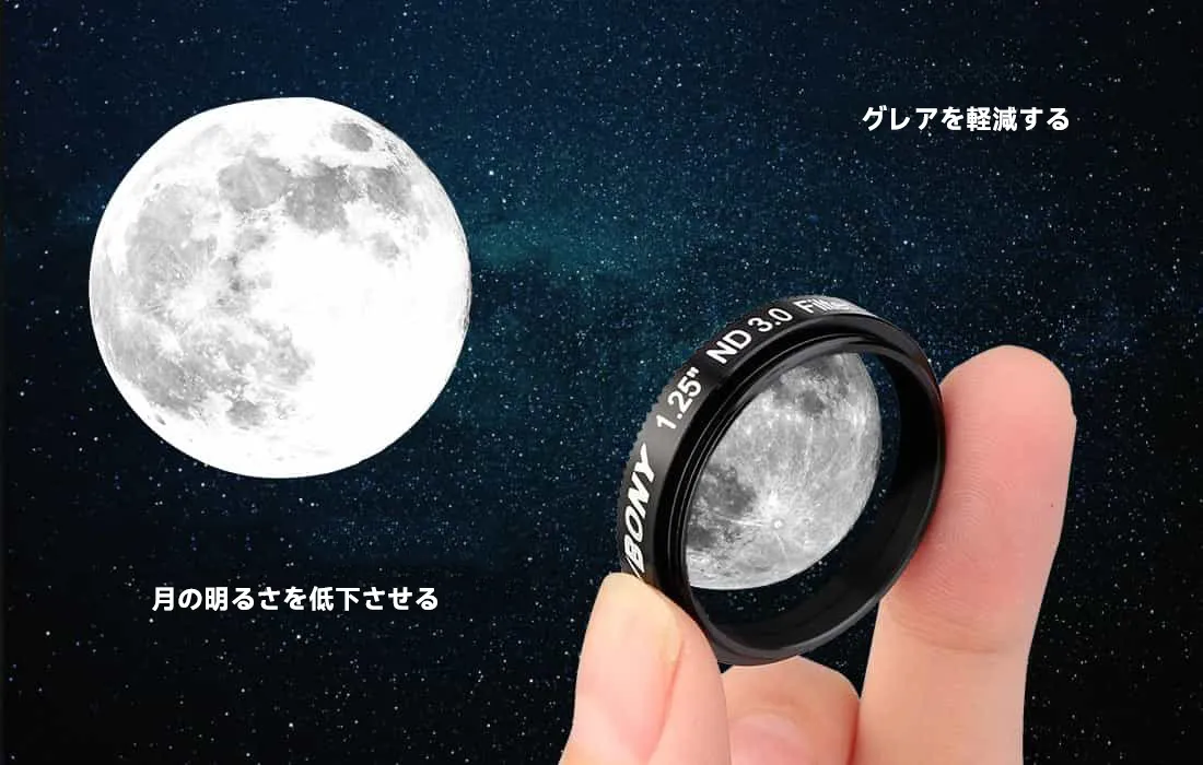 1、1.25 "NDムーンフィルター。まぶしさを抑え、望遠鏡で月の詳細と表面の特徴をよく見えます。月の自然な色を変えないです。