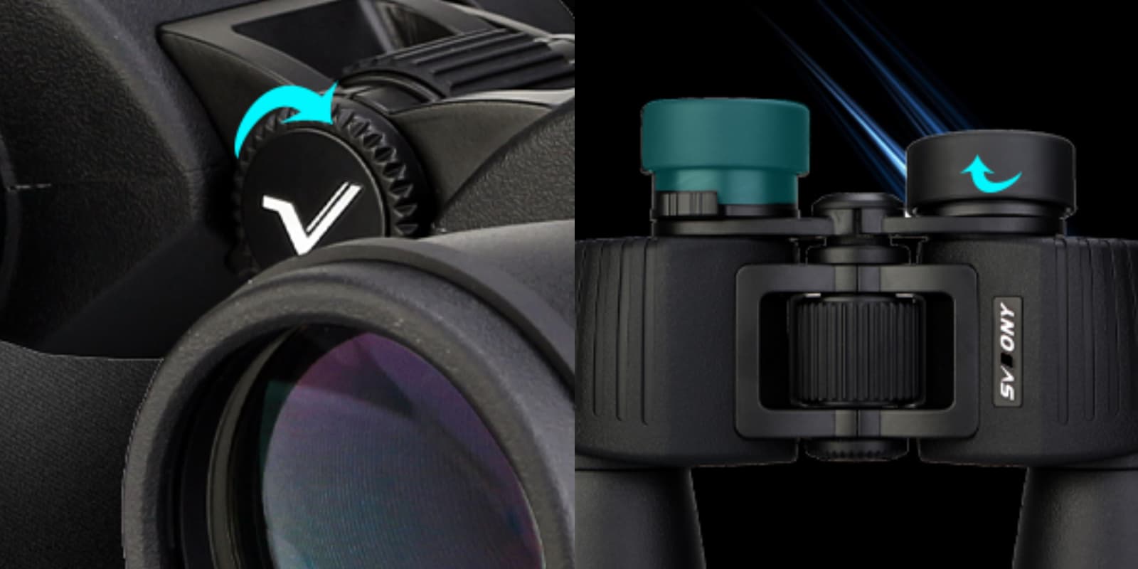 SA204双眼鏡には中央に大型のフォーカシングホイールが備え、片手でスムーズなフォーカシングが可能です。