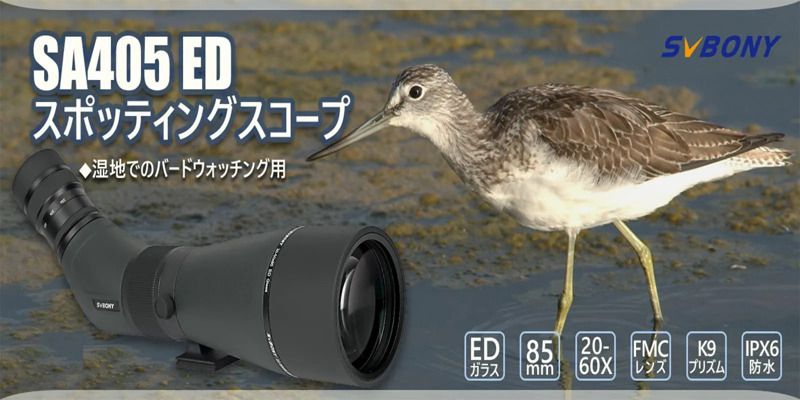 1.SA405はED(特殊低分散)レンズ採用のフィールドスコープです。空気分離式対物レンズを採用し、色にじみの極めて少ないコントラストに優れた視野を実現します。