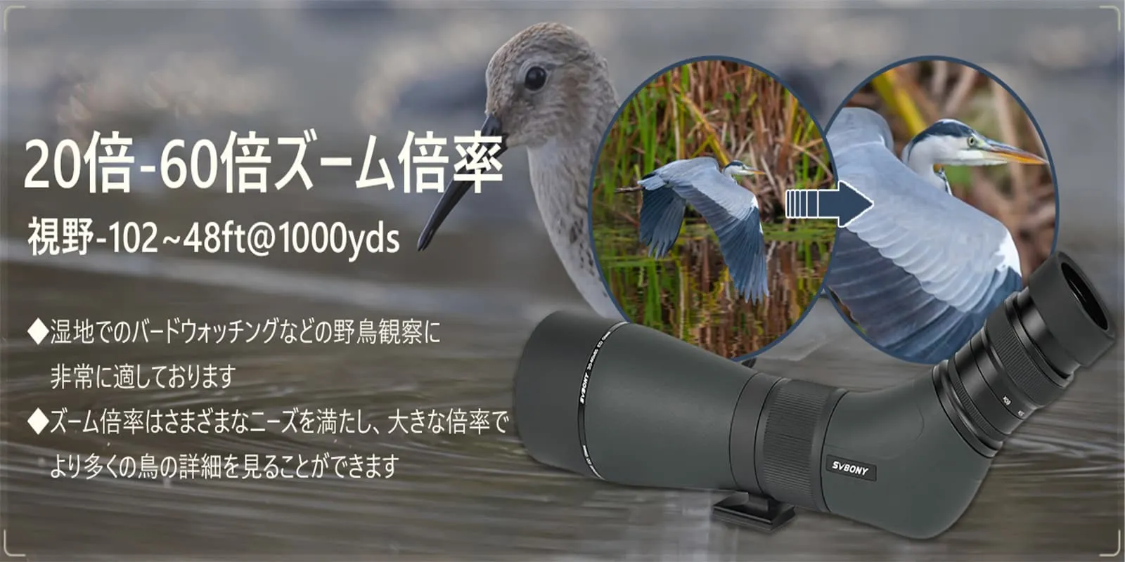 SVBONY SA405 フィールドスコープ 20-60X85MM スポッティングスコープ 1.25インチ取り外し可能な接眼レンズ 野鳥観察 野生動物の観察
