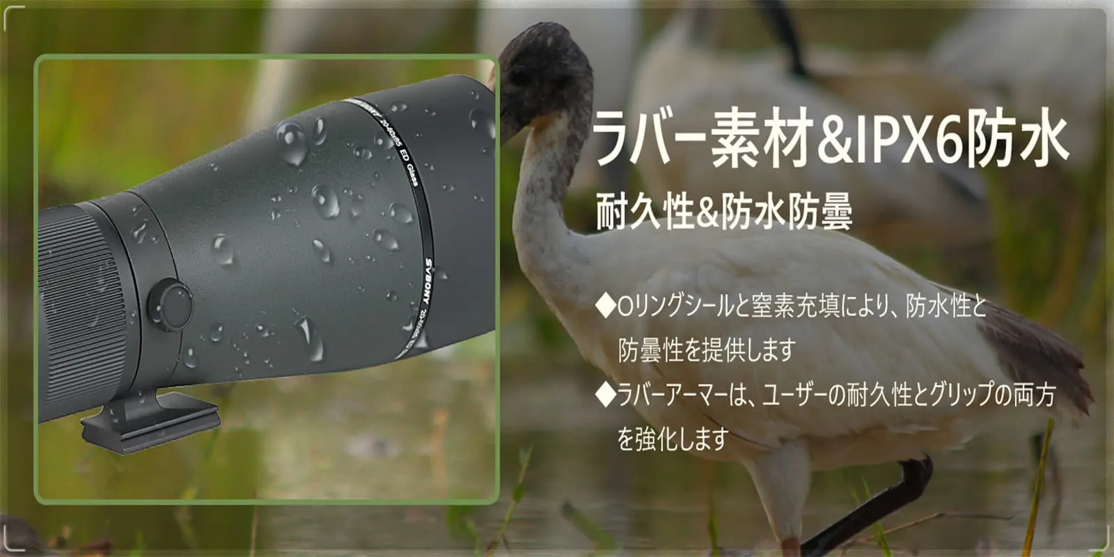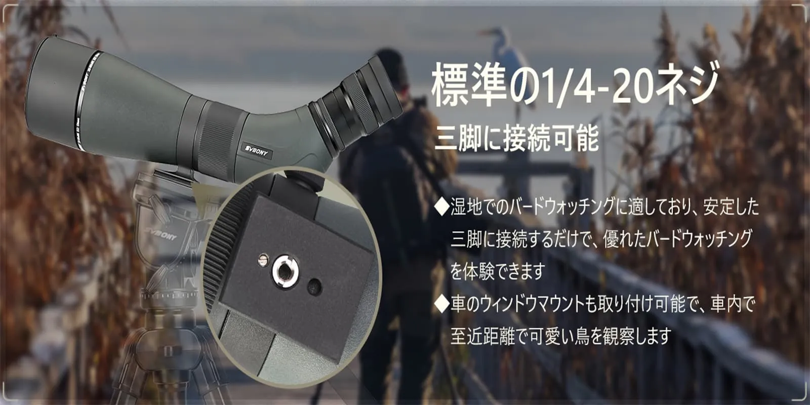 湿地でのバードウォッチングに適しており、三脚に接続すると、より安定した観察ができます。