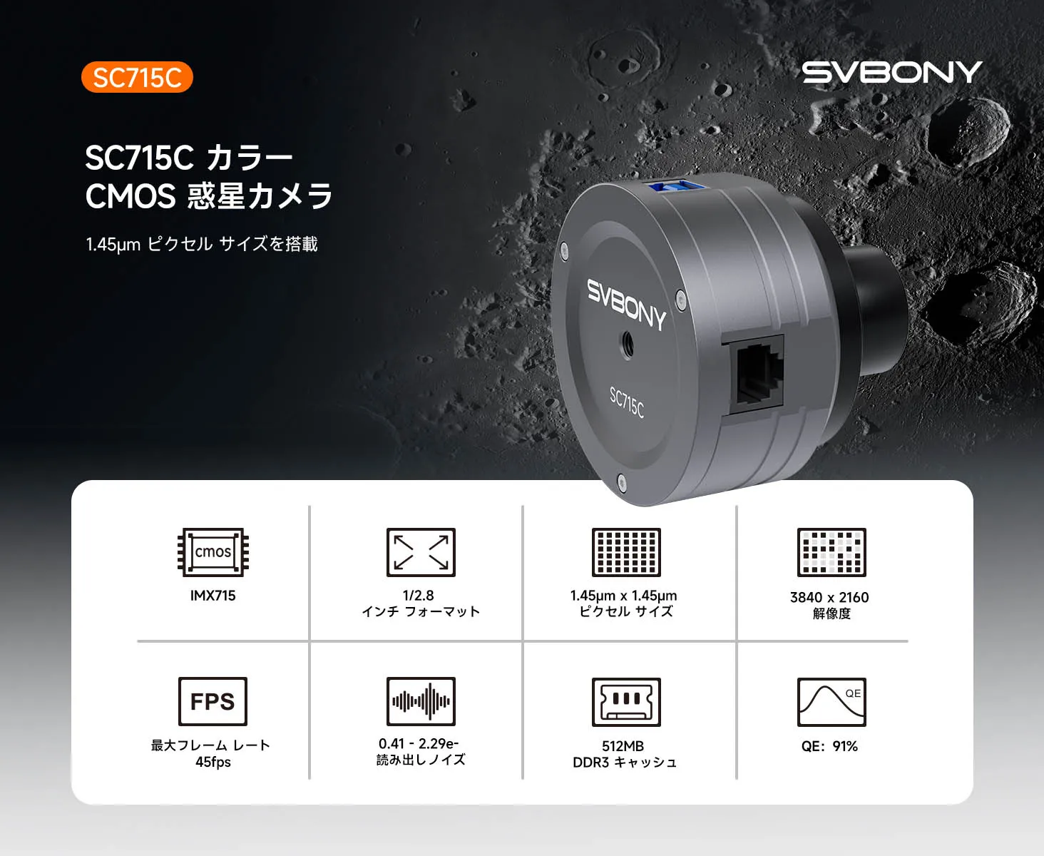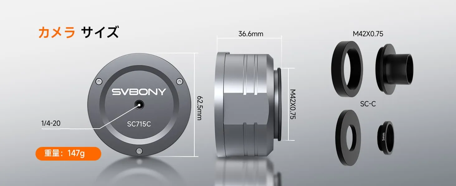 SCはSVBONY camera、715はIMX715センサーを使用していること、Cはcolorの意味です。