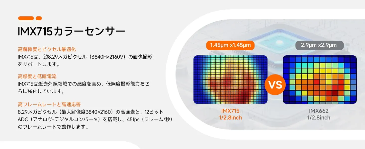 1.45μm画素サイズの小型ピクセルセンサーを搭載し、ピクセルサイズが1.45μm×1.45μmと小さく、 4K 解像度で驚くほど詳細な画像を提供します。豊富なアクセサリーにより、ほぼすべての天文機器とシームレスに組み合わせることができ、天体写真撮影が簡単になります。