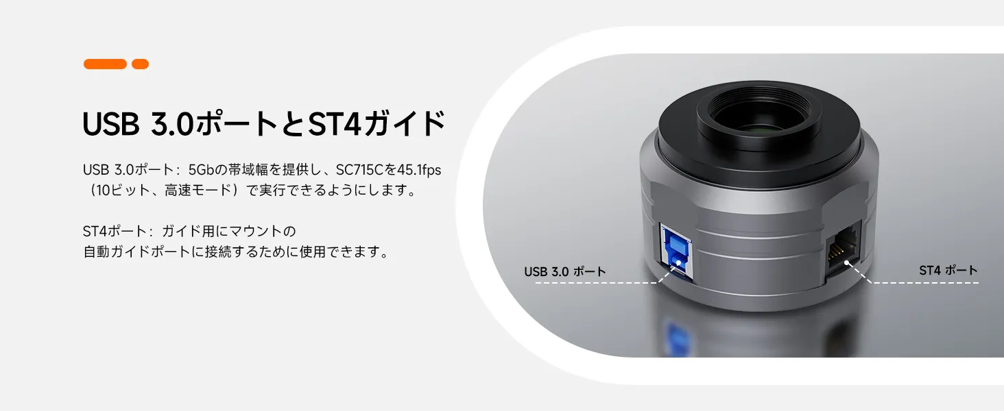 SC715C惑星用カメラ 4K 解像度 IMX715CMOSセンサー 512MB DDR3 キャッシュ ST4 オートガイダー インターフェース