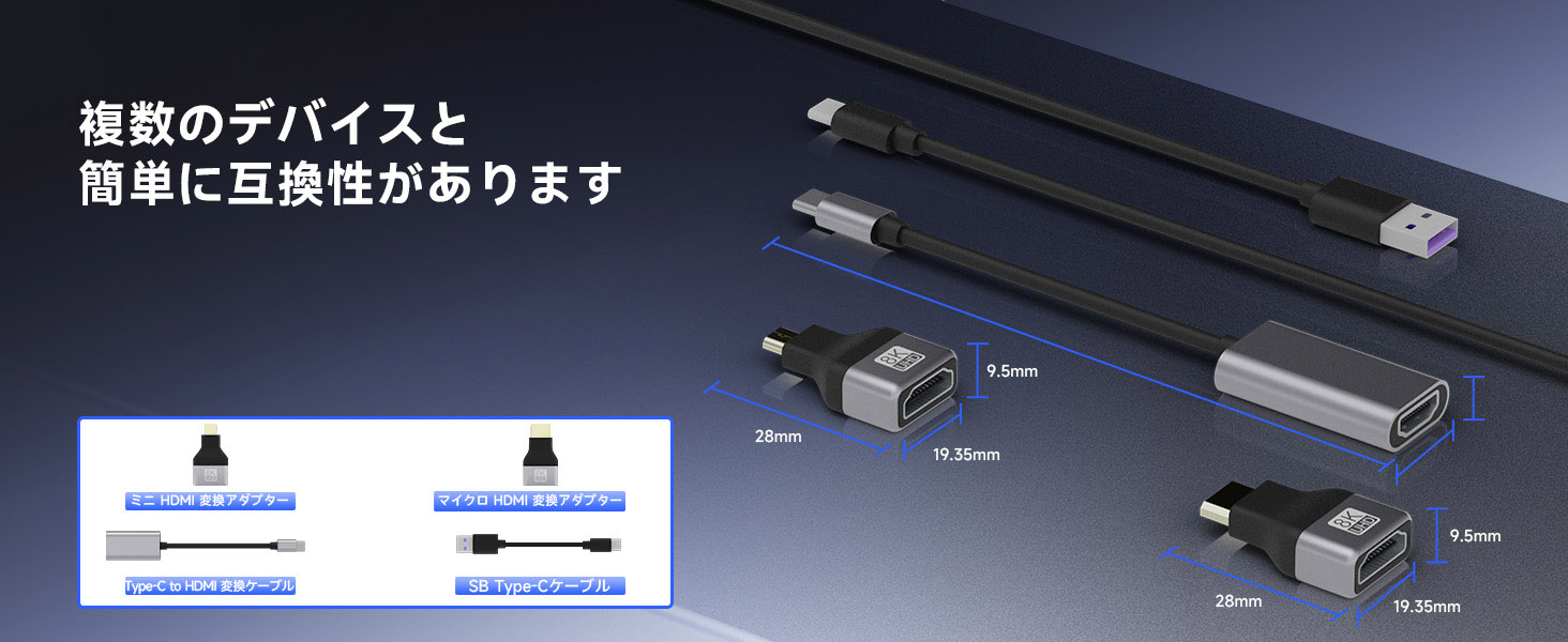 5、幅広い互換性と使いやすさ: ミニ HDMI 変換アダプター、マイクロ HDMI 変換アダプター、TType-C to HDMI 変換ケーブルの 3 種類のアダプターが付属しており、ほぼすべてのディスプレイ デバイスとの互換性が確保されています。