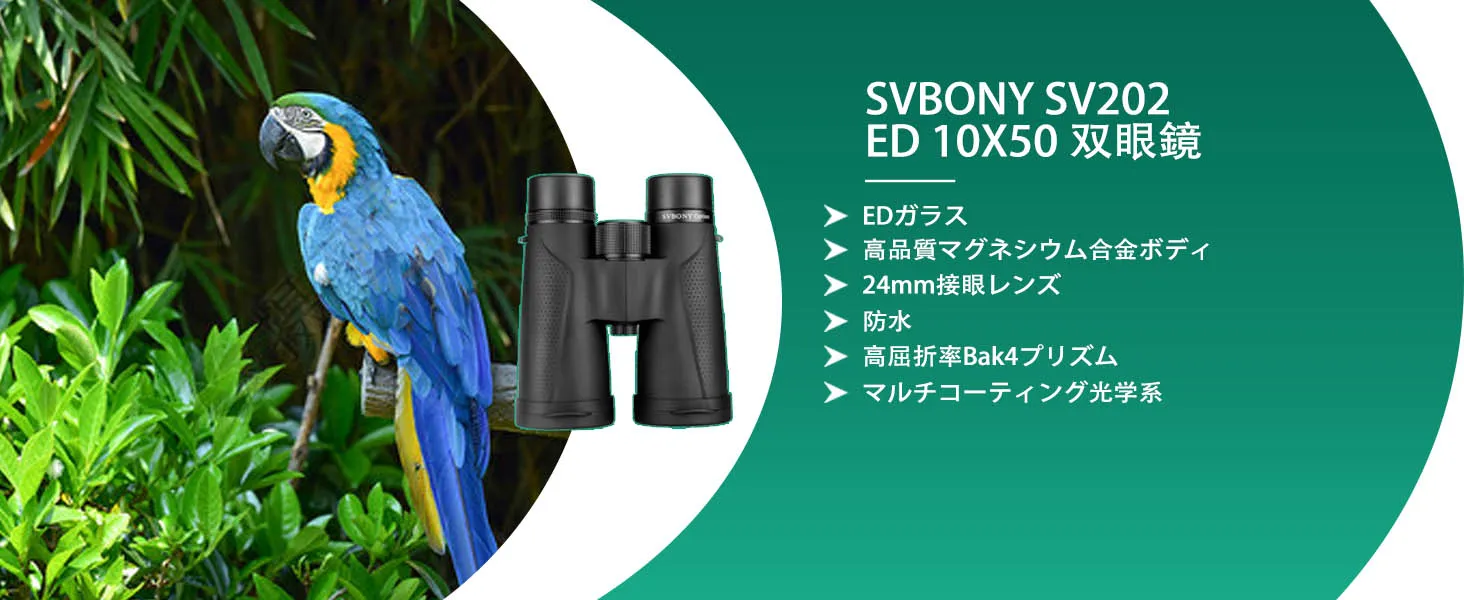 SVBONY SV202 10x50双眼鏡 EDレンズ IPX7防水 Bak-4プリズム バードウォッチング コンサート 競技会 ハイキング