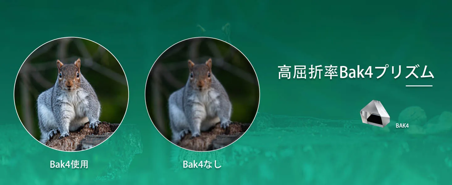 2. 位相補正コーティングされたBaK4プリズムにより、広く明快な視野です。
