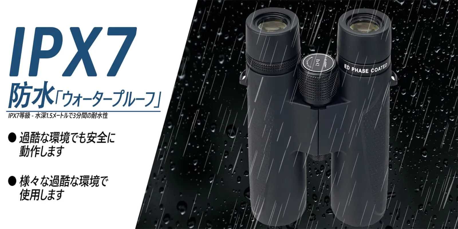 IPX7レベルの防水・防曇構造で、さまざまな過酷な環境で使用できます。