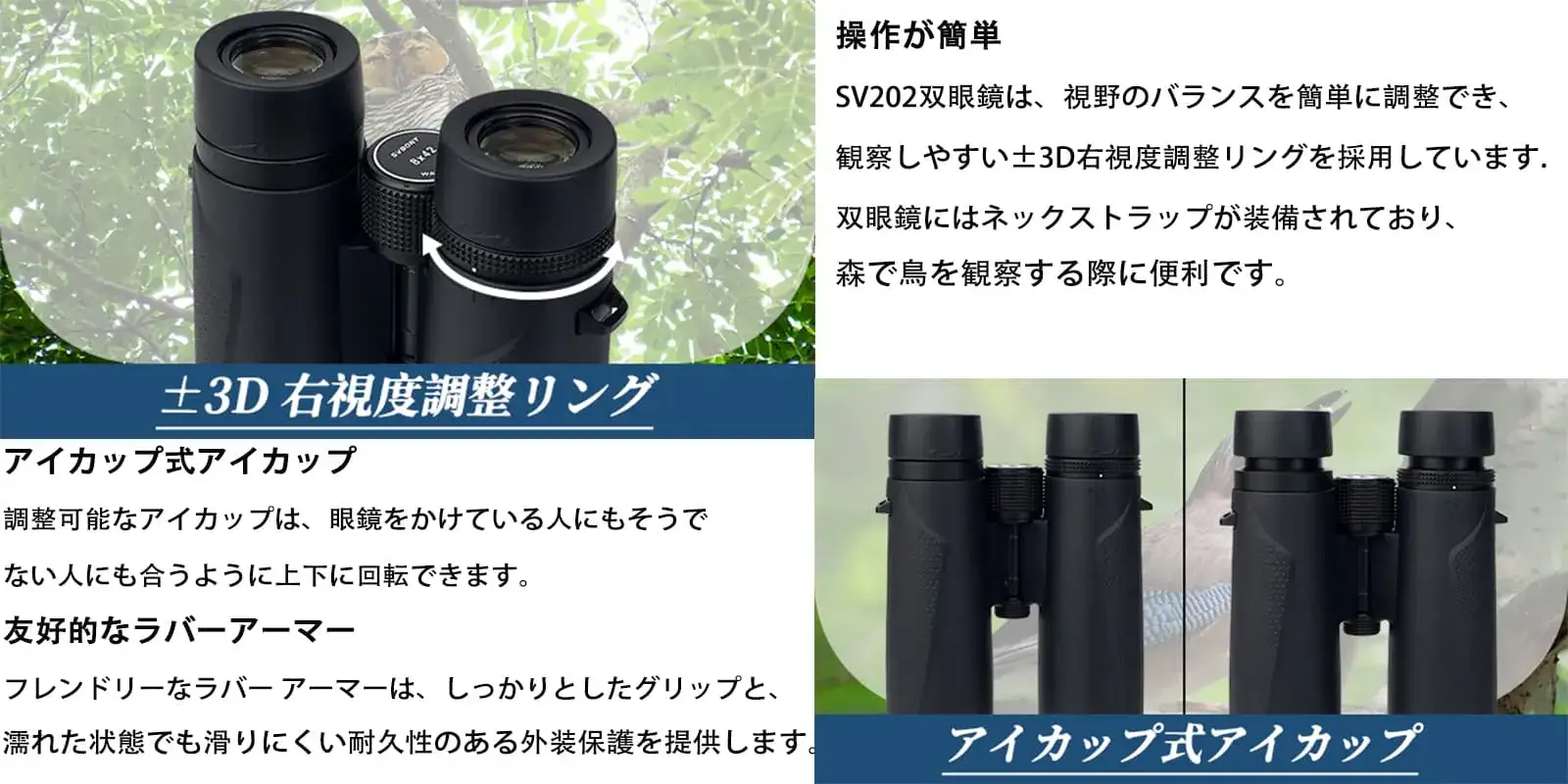 SVBONY SV202 双眼鏡 8x42 EDガラス 野鳥観察 バードウォッチング用