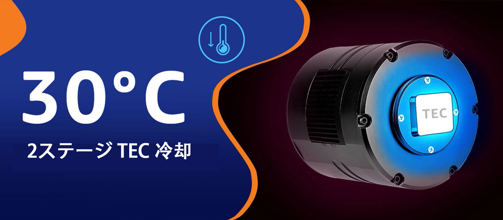 - TEC半導体2段冷却システム:CMOSセンサーを周囲温度から30°の温度差に低減し、暗電流の発生を低減し、数百秒の長時間露光でもノイズが非常に小さくなります。14ビットADCデジタル-アナログ変換により、13ビットダイナミックレンジに達することができ、深宇宙写真撮影に非常に適しています。CMOS冷却カメラの設定温度ブログ>>
