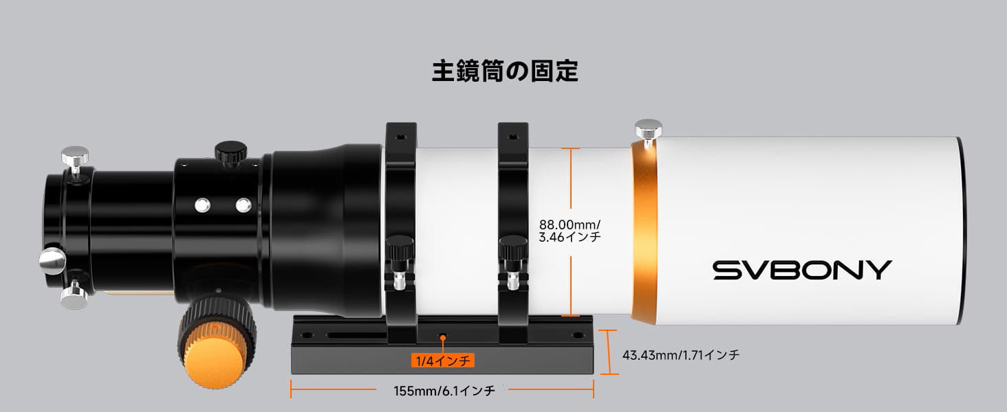 堅牢な安定性。望遠鏡チューブをしっかりと固定することで揺るぎない安定性を確保し、使用中のぐらつきや振動を排除します。