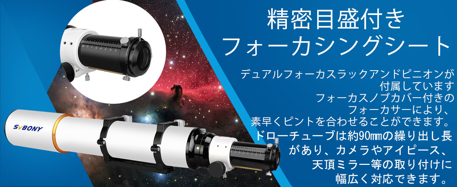 SV503 102mm屈折望遠鏡は、経験豊富な観察者だけでなく、初心者にも適しています。天体写真、月と惑星、自然観測、星雲と銀河などに適用します。万が一商品には不具合また損傷がありましたら、お気軽にご連絡ください。必ず最善を尽くし、保証サービスをご対応いたします。