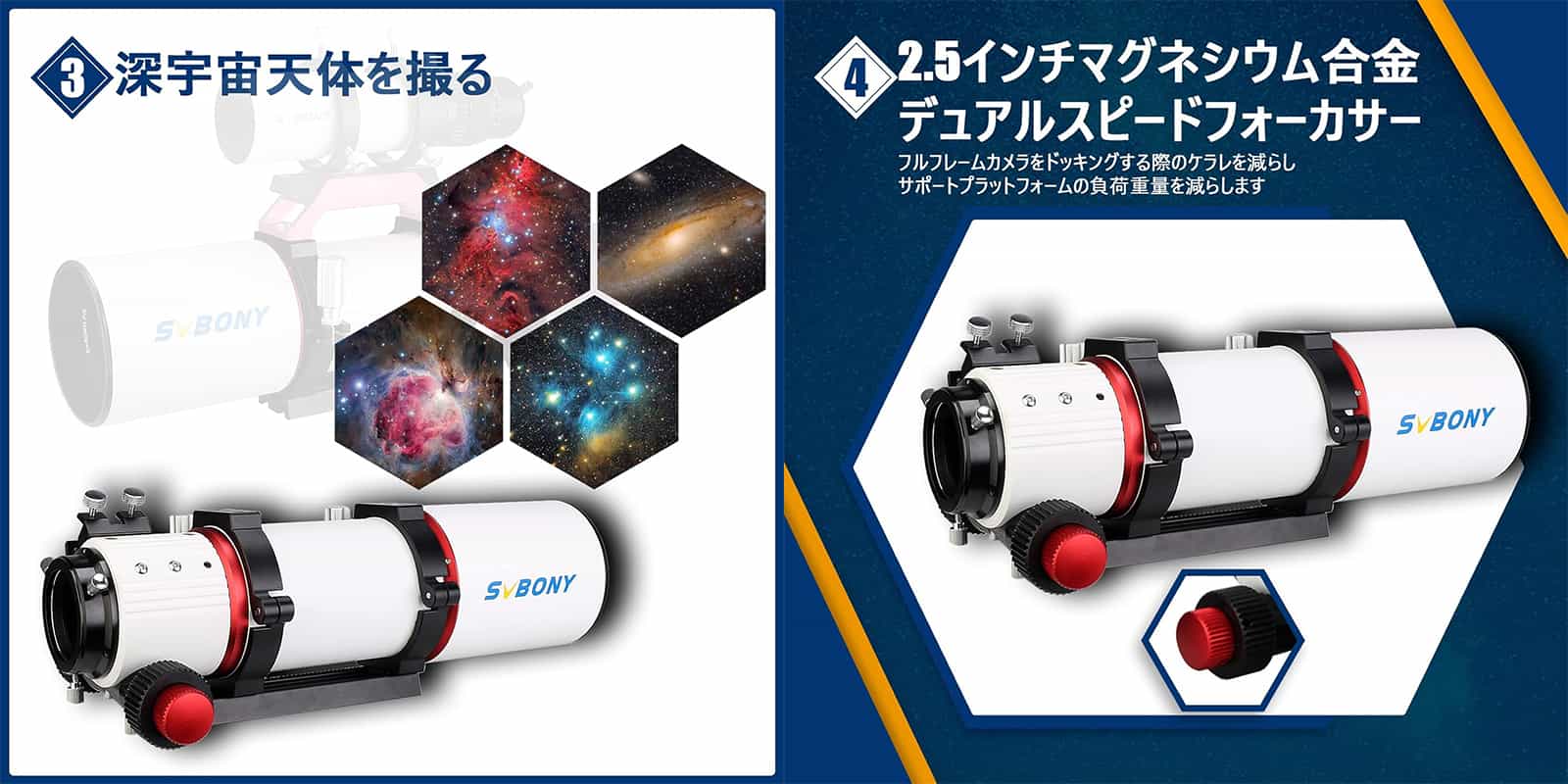 3.光学性能を眼視観望だけでなく、さまざまな天体撮影へとその運用範囲を広げていただけます。