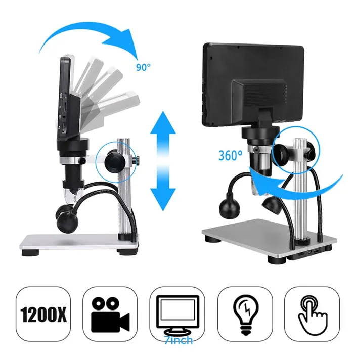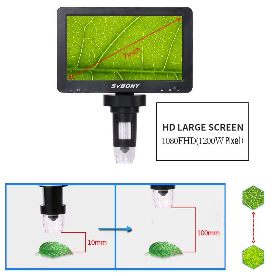 1.SV604 デジタル顕微鏡は高品質の1080p画像を提供してより鮮明に表示でき、7インチの大型HD LCDスクリーンを搭載し、見やすい広い視野を提供してミクロ世界の観察体験をもたらします。充電式リチウムイオン電池とUSBで給電されます。ポータブルで持ち運びやすいです。