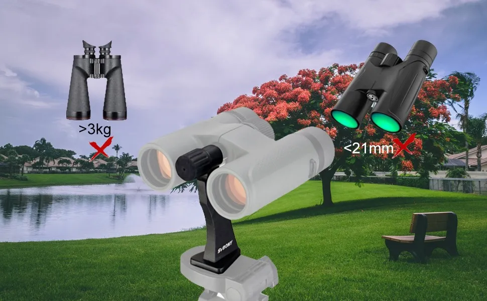 2、直径20mmのキャップナット双眼鏡を三脚に固定するプロセスをより早く簡単にする; SV110を双眼鏡に接続する前に、2つの対物レンズチューブの間のスペースが21mmを超えていることを確認してください。